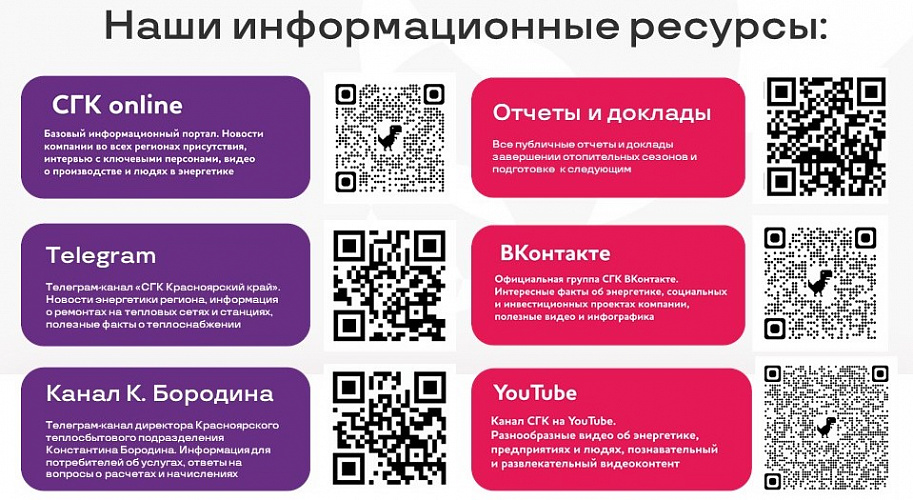 Каждый день мы публикуем актуальные новости, интервью, аналитические обзоры, информацию об отключениях и интересные факты из области энергетики на нашем информационном портале sibgenco.online